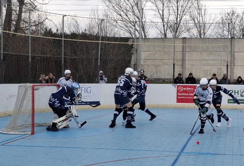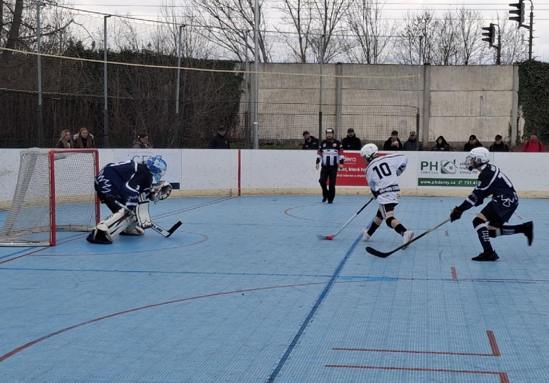 Druhý tým tabulky se rozjížděl volněji. Od úvodního vhazování sice byla aktivita jednoznačně na jeho straně, měl střeleckou převahu a vytvářel si gólové příležitosti, ovšem dopad na skóre byl skromný. V první třetině bíločerní vedli 2:0 díky důrazu Topiče na brankovišti a nenápadné střele Kubínové, po níž si míček našel skulinku mezi betony gólmana soupeře. „Mohlo tam toho napadat víc, produktivita nebyla ideální,“ poznamenal trenér Šídlo.